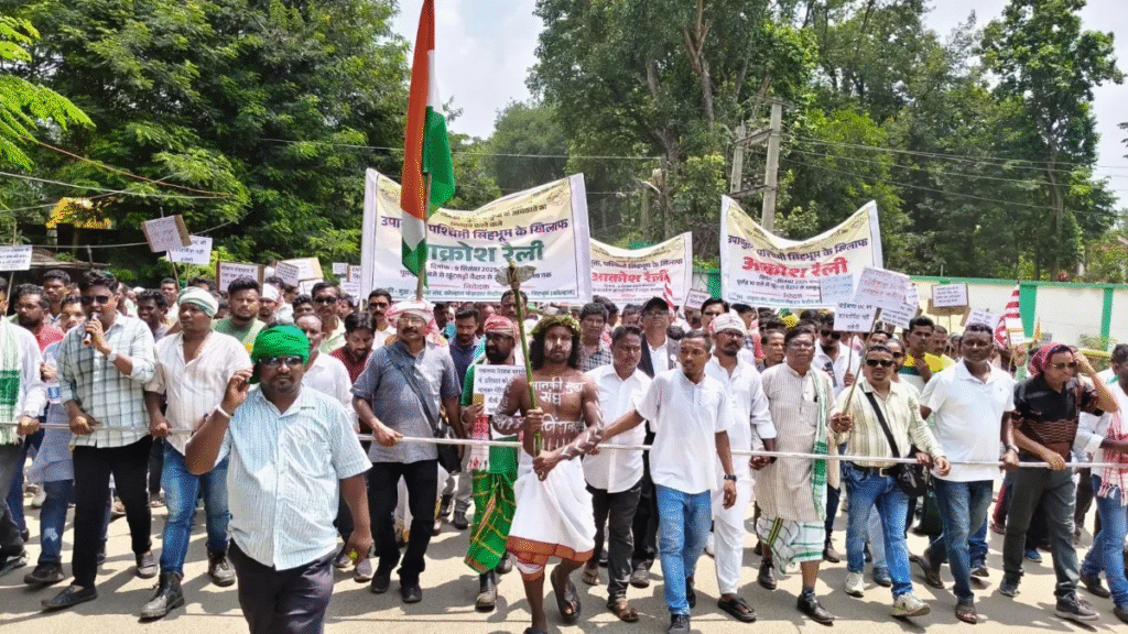 • झारखंड के पश्चिम सिंहभूम जिले में हो जनजाति के लोग विरोध प्रदर्शन पर उतर आए।